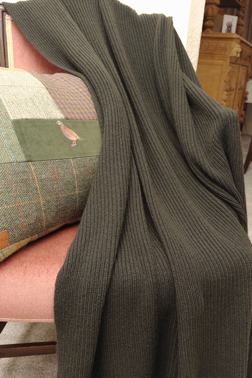 Our dark seaweed green 100% cashmere knitted blanket is crafted from the finest 4-ply pure cashmere fibers for superior softness, warmth, and durability. Designed for those who appreciate quality and understated luxury, this blanket adds elegance to any living space.