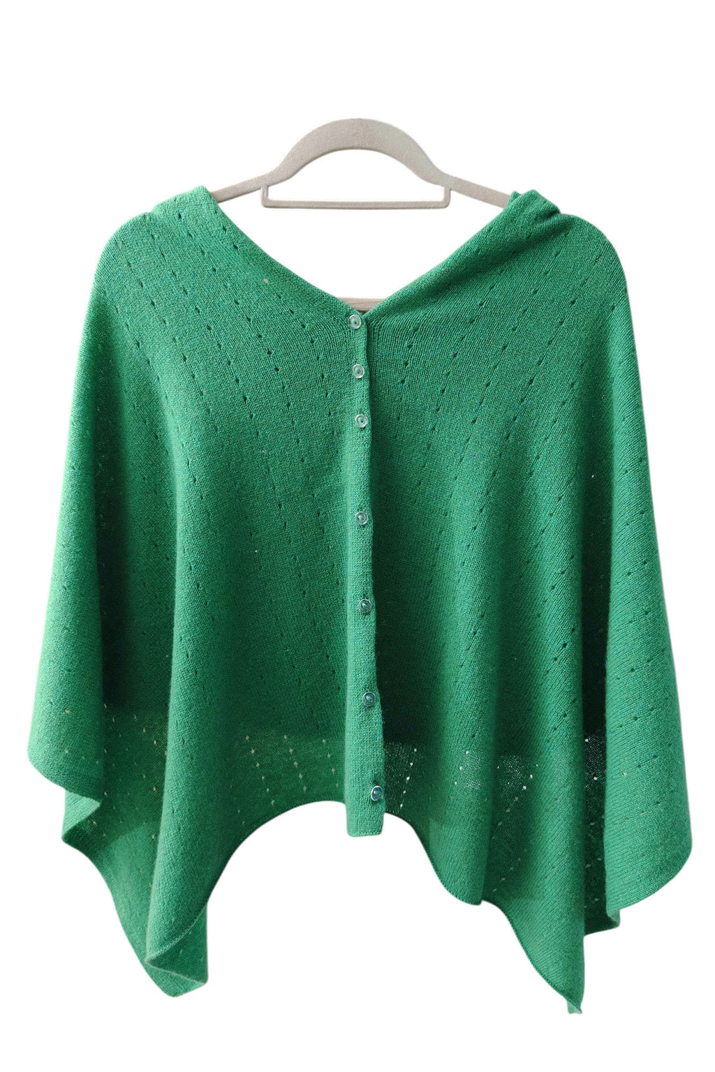 This jade green cashmere poncho is wearable in any season, whether it's summer, spring, autumn or winter.