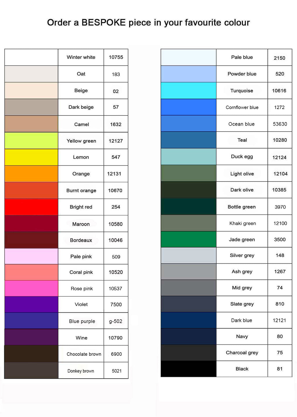 Welcome to order in your favourite cashmere colour, you can choose from the colour palette shown in the image.