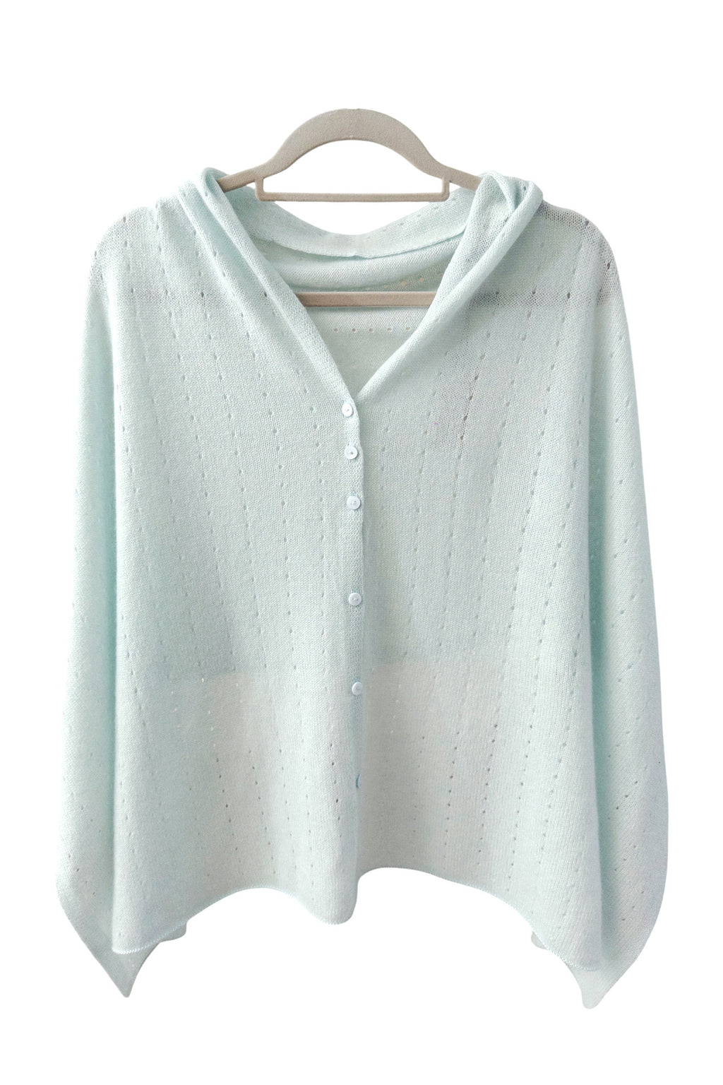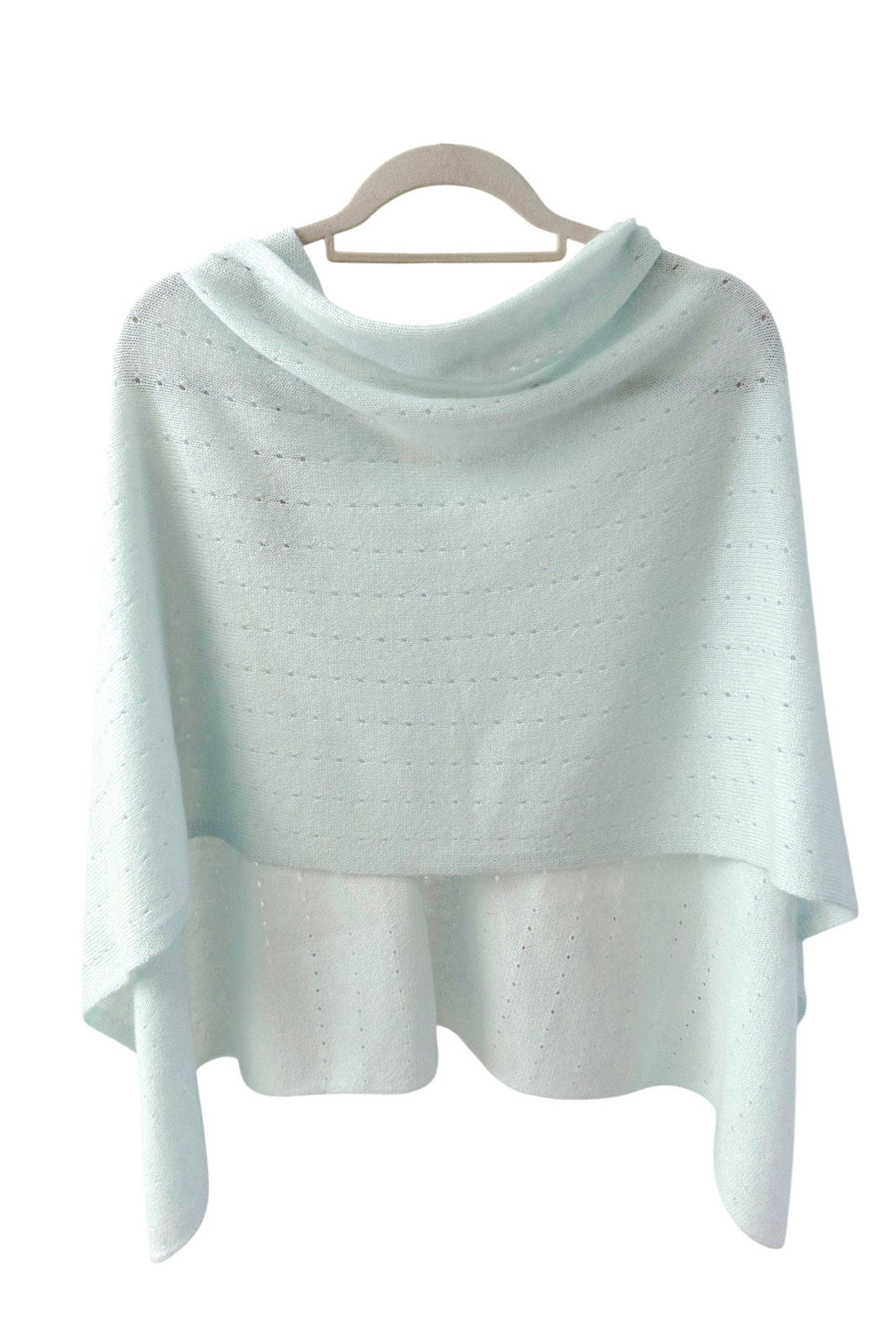 This pale aqua cashmere poncho is wearable in any season, whether it's summer, spring, autumn or winter.