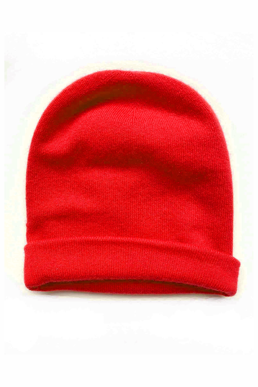 This double-layered bright red cashmere hat for women boasts a plain and simple yet stylish design.
